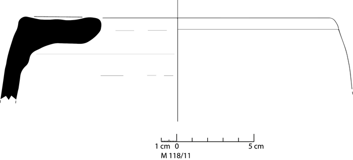colour greenish white, core very pale red, texture middle fine, numerous small and few large inclusions: reddish, white, grey, voids |