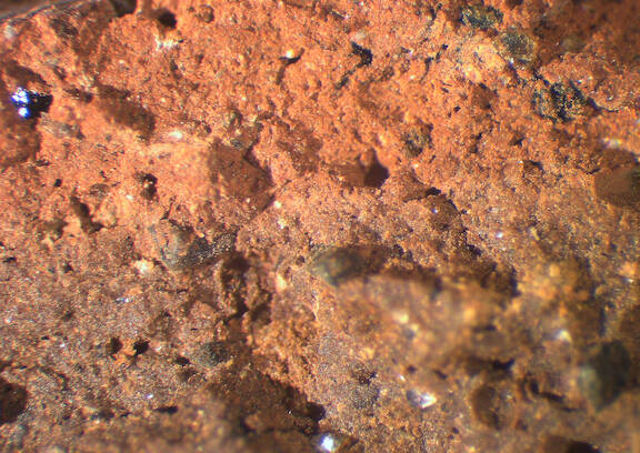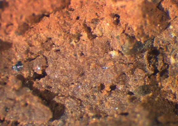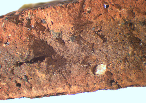 frequent, rounded, reddish brown;reddish brown, 0.2-0.3 |