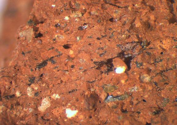 frequent, rounded, reddish brown;reddish brown, 0.2-0.3 |