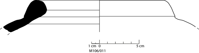 colour red, texture fine and compact, small and few large inclusions: white, grey, red, voids, mica |