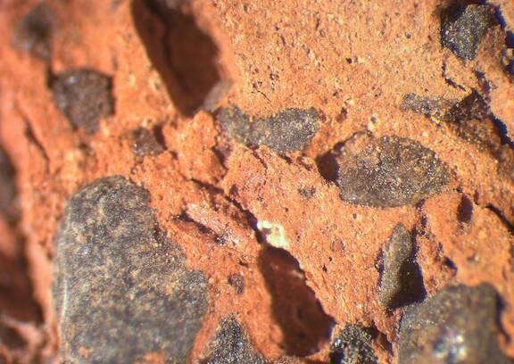 infrequent, subrounded, subspherical, red, 0.1-0.1 |