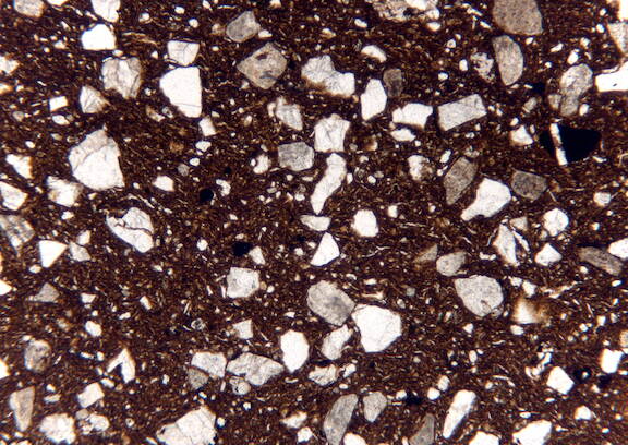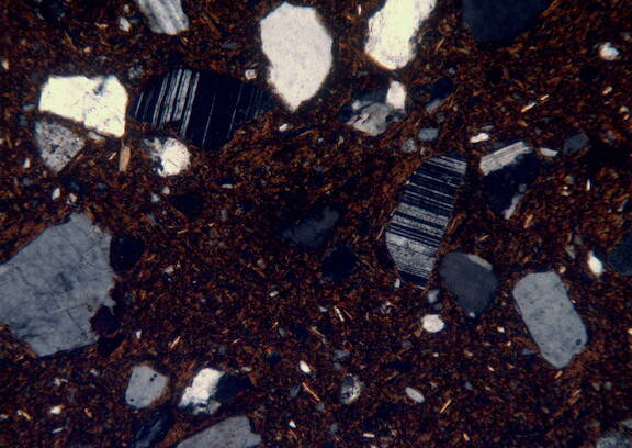 frequent, rounded, elongate, dark grey, 0.2-0.4 |