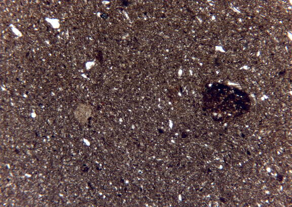 infrequent, subangular, subspherical, rust coloured, 0.04-0.4 |